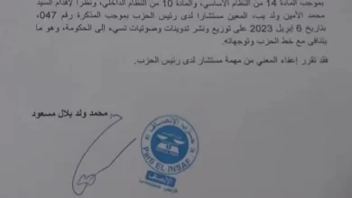 وهنأ قائد القوة العسكرية في البعثة الأممية الفريق أول سيديكي تراورى، أفراد الكتيبة الموريتانية على جهودهم المتواصلة، ومساندتهم الدائمة لسكان المنطقة، كما شجعهم على المحافظة على السمعة الحسنة لموريتانيا وللكتيبة الموريتانية.