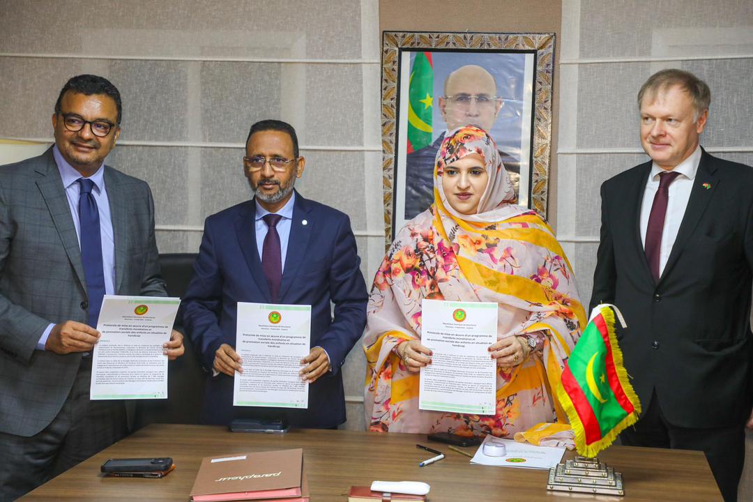 ووقّعت الاتفاقية كل من وزيرة العمل الاجتماعي والطفولة والأسرة صفية بنت انتهاه، ومندوب “التآزر” الشيخ ولد بده، وممثل “اليونيسف” في موريتانيا الكبير العلوي المدغري، خلال حفل رسمي نُظم في نواكشوط.