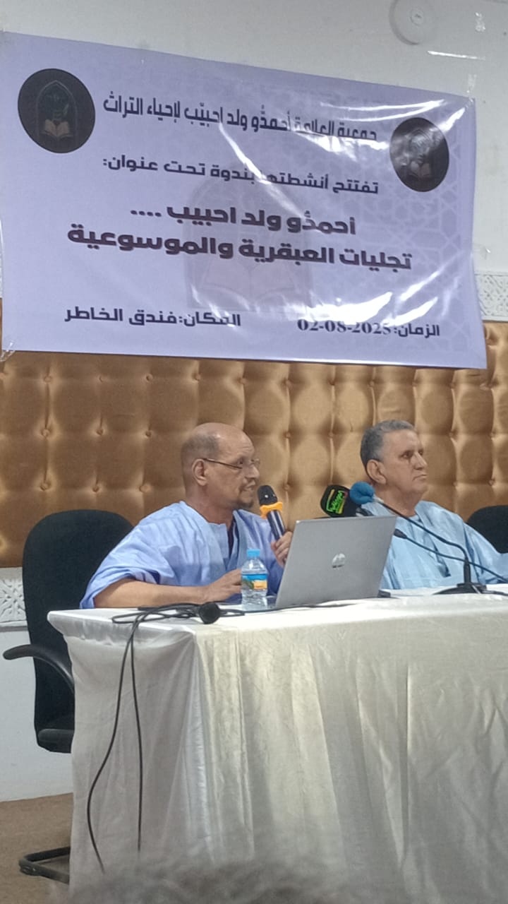 الركب انفو/ نظّمت جمعية العلامة الجليل فضيلة الشيخ : أحمدو ولد احبيب لإحياء التراث مساء اليوم السبت في نواكشوط، ندوة علمية تحت عنوان: “أحمدو ولد احبيب: تجليات العبقرية والموسوعية”، وذلك بمناسبة انطلاق أنشطة الجمعية الهادفة إلى إحياء التراث الثقافي الوطني، وتشجيع البحث العلمي، وتحقيق ونشر المخطوطات الموريتانية الأصيلة.