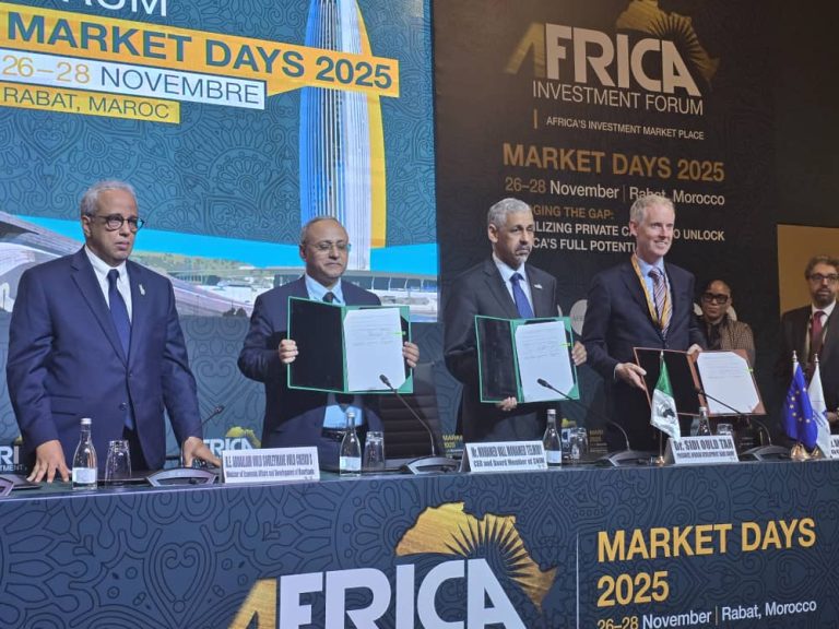 الركب انفو/ وقّع وزير الشؤون الاقتصادية والتنمية، عبد الله سليمان الشيخ سيديا، على هامش منتدى الاستثمار الإفريقي 2025، اتفاقية تمويل كبرى بين البنك الإفريقي للتنمية والبنك الأوروبي للاستثمار والشركة الوطنية للصناعة والمناجم (سنيم)، بقيمة إجمالية تصل إلى 275 مليون دولار، مخصصة لتوسيع ورفع الطاقة الاستيعابية لشبكة السكك الحديدية التابعة للشركة.