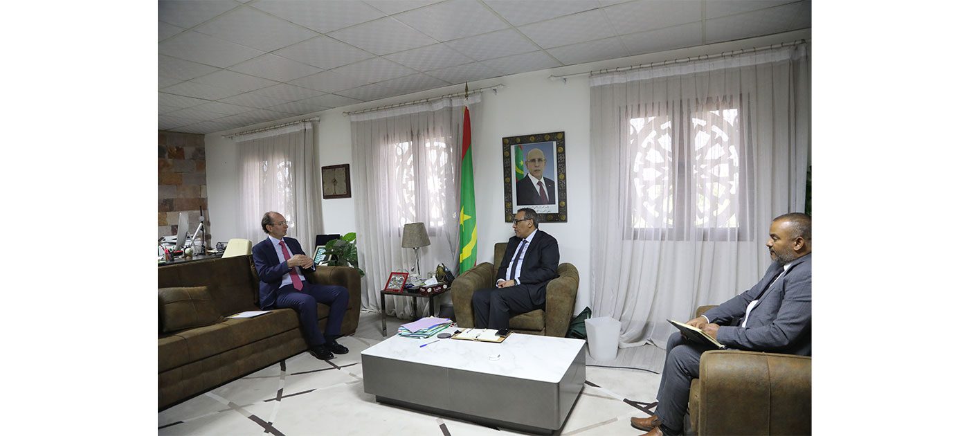 بحث وزير التعليم العالي والبحث العلمي، يعقوب ولد أمين، اليوم الخميس، مع سفير المملكة الإسبانية بنواكشوط، بابلو باربرا غوميز، سبل تعزيز وتطوير علاقات الشراكة والتعاون، في مجالات التعليم العالي والبحث العلمي.